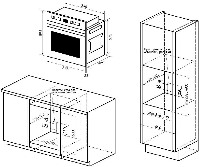 | Размеры для встраивания | 55.6x56.5x58.5см |
