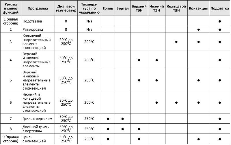 | Количество программ духовки | 9 |