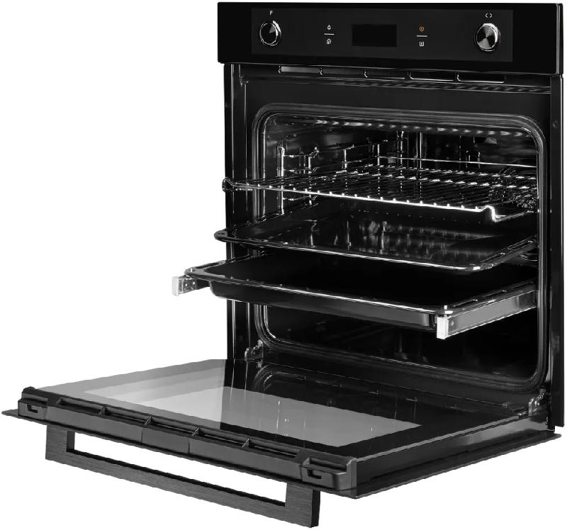 Электрический способ подключения гарантирует стабильное и равномерное распределение тепла, а мощность в 3 кВт обеспечивает быстрый разогрев и поддержание необходимого температурного режима. Максимальная температура до 250°C позволяет готовить самые разнообразные блюда, от нежных запеканок до сочных стейков. Управление духовкой полностью электронное, с сенсорными утапливаемыми поворотными переключателями и цифровым дисплеем, что обеспечивает точность настройки параметров и удобство эксплуатации. Программатор с таймером и часами помогает контролировать время приготовления, предотвращая перегрев или недожаривание продуктов.