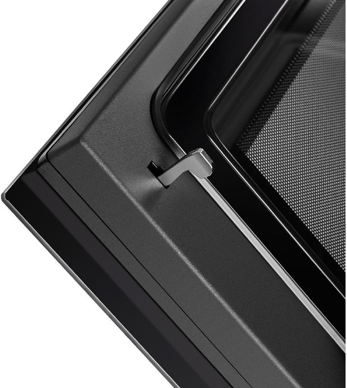 Система тангенциального охлаждения благодаря мощному вентилятору создает вокруг корпуса воздушный барьер. Движущийся в нем воздух препятствует утечке тепла и позволяет защитить от перегрева как поверхность прибора, так и кухонную мебель, в которую он установлен.