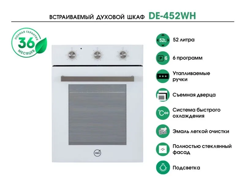 Духовой шкаф Электрический MBS DE-452 белый стекло/белый