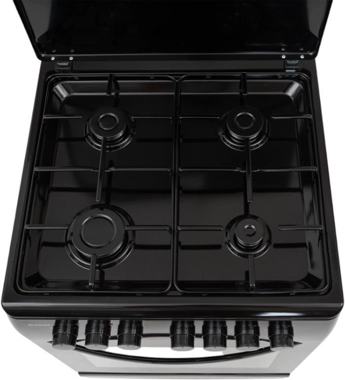 Габариты (ШхГхВ), мм - 600х630х855 Цвет - черный Мощность конфорок, Вт - 1000/1750/1750/2850 Крышка варочной поверхности - металлическая Решетка - эмалировання сталь Духовой шкаф - электрический Мощность нижнего нагреват. элемента, Вт - 1200 Мощность верхнего нагреват. элемента, Вт - 1000 Термомостат - есть Объем духового шкафа, л - 70 Количество стекол дверцы, шт. - 2 Вес нетто / брутто, кг - 39/40,5 размеры в упаковке (ШxГxВ) (мм) - 635х635x885