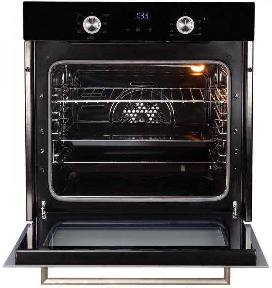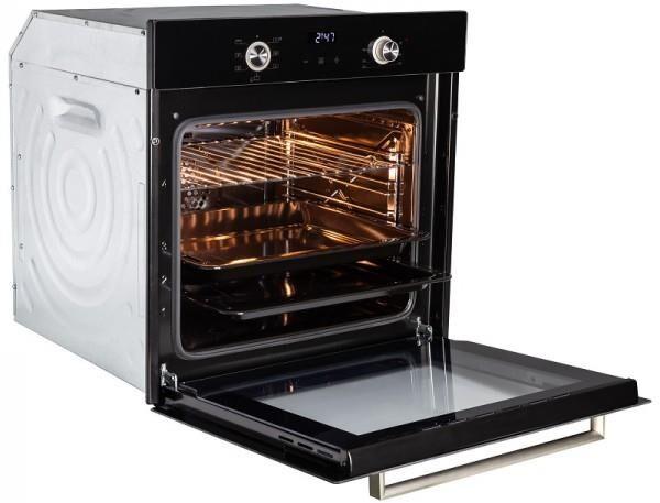 Духовой шкаф (электрический). Цвет: Черный, Цвет фурнитуры: серебристый + нержавеющая сталь, Материал фасада: закаленное стекло, Класс энергопотребления: A+, Управление: сенсор + утапливаемые переключатели, Программатор: электронный, Объем: 70 литров, Количество функций 7: гриль, верхний нагрев с конвекцией, нижний нагрев с конвекцией, верхний и нижний нагрев, верхний и нижний нагрев с конвекцией, 3D-конвекция, конвекция (разморозка), Мощность: 2100 Вт, Стекла дверцы: двойное съемное стекло, Панорамное внутреннее стекло Smart Eye, Холодный фронт, Очистка духовки: эмаль Easy Clean, Тангенциальное охлаждение, Хромированные боковые направляющие, Уровней установки противня: 5, Решетка, Противень: стандартный + глубокий, Габариты (ШхГхВ): 595*543*595 мм, Ниша для встраивания (ШхГхВ): 560*550*600, Длина шнура 1300 мм, Вес брутто 33,95 кг, Срок службы до 10 лет.