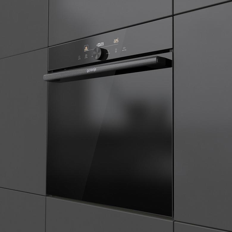 Электрический духовой шкаф Gorenje BOS6747A05DG оснащен системой очистки AquaClean и внутренним покрытием SilverMatte, устойчивым к воздействию высоких температур и жировых отложений. Двухслойное стекло дверцы с доводчиком сохраняет стабильность нагрева и снижает теплопередачу наружной поверхности.