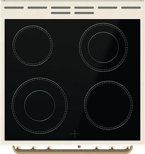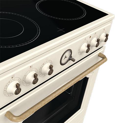 Модель EC 55320 RW из коллекции Retro выполнена в бежевом цвете. Изящный теплый тон привнесет в интерьер уют и комфорт. Изысканная фурнитура и эксклюзивный дизайн дверцы дополняют общий образ. Электрическая плита оборудована одиннадцатью функциями духовки, что позволяет готовить разные виды блюд. «Конвекция» подойдет для приготовления выпечки, а «Гриль» — для придания блюду ароматной и хрустящей корочки. Съемные направляющие и эмаль SilverMatte облегчают процесс очистки духовки. Стеклокерамическая варочная поверхность с четырьмя конфорками Hi-Light имеет две двухконтурных зоны расширения, что позволяет использовать посуду разного диаметра, экономя при этом электроэнергию.