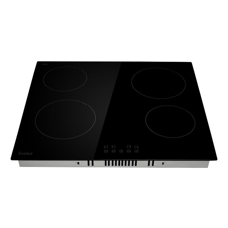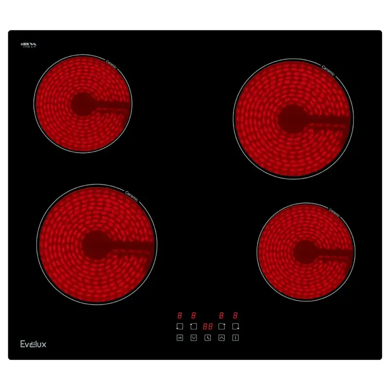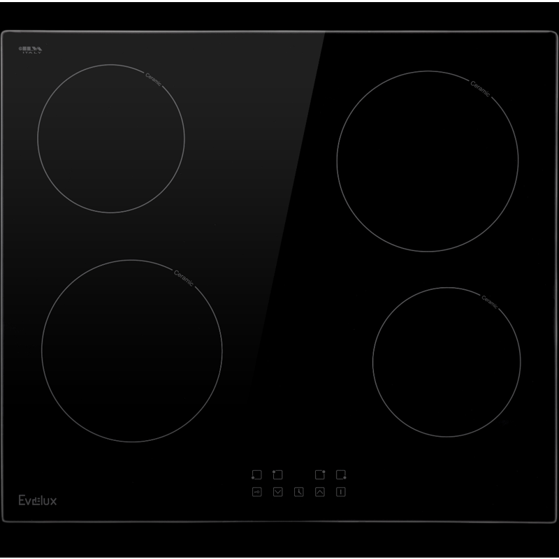 Для управления устройством предусмотрена сенсорная панель, которая характеризуется быстрым откликом на прикосновения. Это повышает удобство при выборе параметров работы. Панель управления расположена на передней части. В конструкции электрической варочной панели Evelux EV 6040 предусмотрен цифровой дисплей. Индикация включения указывает на готовность модели к работе.