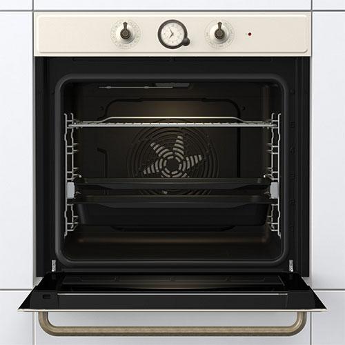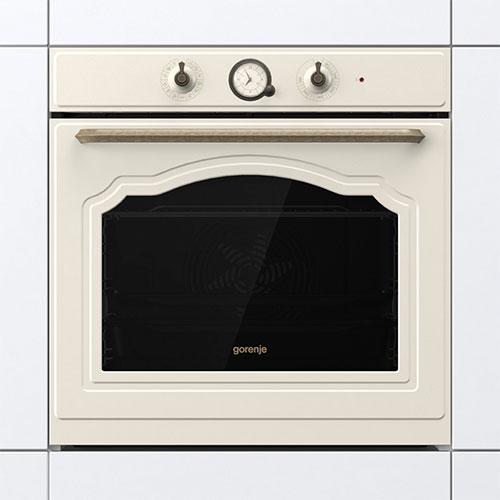Духовой шкаф Gorenje BOS67372CLI — стильная многофункциональная модель выполненная в старинном стиле. Нежный и изысканный цвет слоновой кости оттеняет фурнитура под бронзу, исполненная в той же стилистике. Механическая панель управления вполне вписывается в ретро-антураж и состоит из эргономичных поворотных переключателей и аналогового программатора, с помощью которого можно выбирать нужные функции, устанавливать таймер на отключение или будильник.