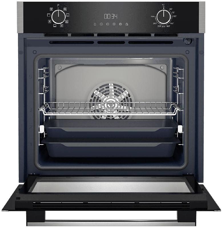 Усовершенствованный механизм плавного закрытия дверцы поможет справиться с неудобствами при эксплуатации стандартных духовых шкафов.