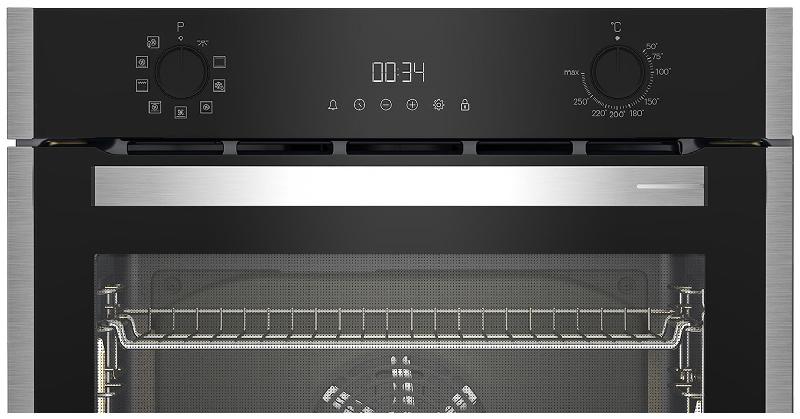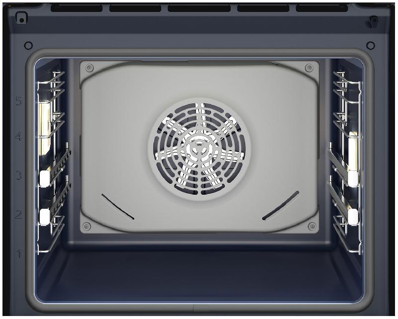 Внутренние стенки покрыты эмалью легкой очистки. Освещение обеспечивают галогеновые лампы. В духовку интегрирован таймер, по окончании процесса раздается звуковой сигнал. Блокиратор предотвратит случайный запуск прибора. Дверь закрывается плавно благодаря встроенному доводчику. Устройство укомплектовано металлической решеткой и плоским противнем.