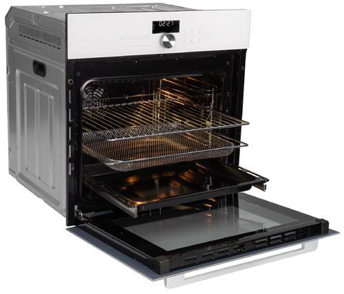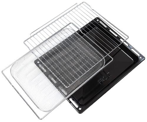 В комплекте с духовым шкафом идут глубокий противень, решётка и корзина для аэрофритюра. Это даёт вам ещё больше возможностей для экспериментов на кухне и приготовления блюд различными способами.