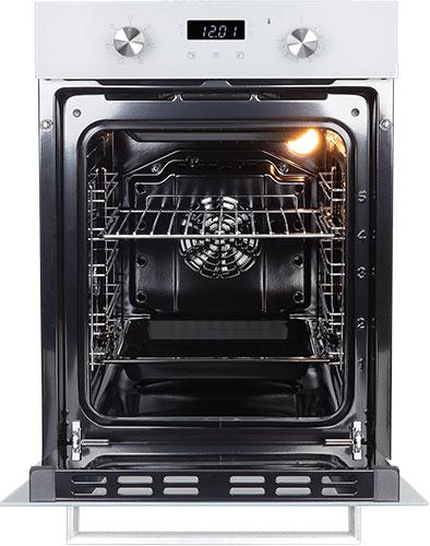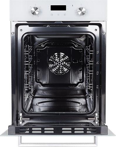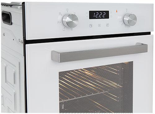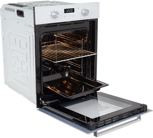 Объем камеры в 51 л с 5 уровнями установки противня на хромированных боковых направляющих позволит приготовить блюда любых размеров: запечь курицу целиком или испечь пирог на большую семью. В комплекте есть противень и съемная решетка.