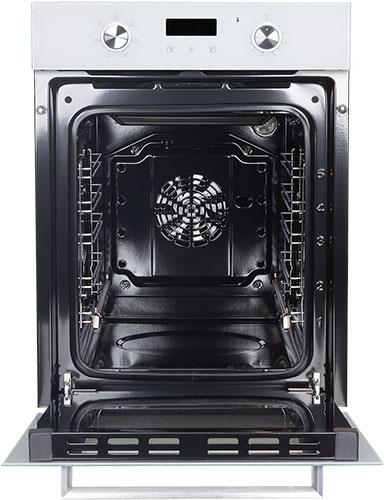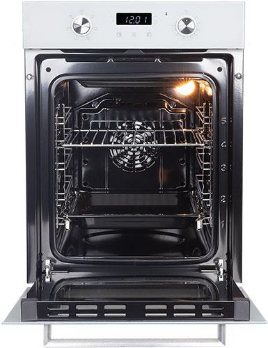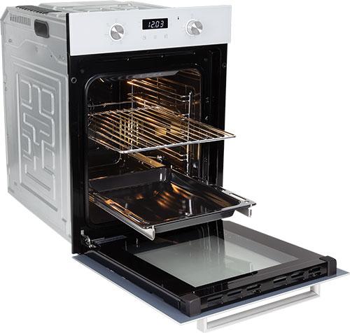 Духовой шкаф (электрический). Цвет: Белый, Цвет фурнитуры: нержавеющая сталь, Материал фасада: закаленное стекло, Класс энергопотребления: A, Управление: сенсор + утапливаемые переключатели, Программатор: электронный, Объем: 51 литр, Количество функций: 6, Функции: гриль, гриль с конвекцией, нижний нагрев, верхний и нижний нагрев, верхний и нижний нагрев с конвекцией, подсветка. Мощность: 2200 Вт, МАХ температура нагрева: 250°С, Стекла дверцы: тройное съемное стекло, Панорамное внутреннее стекло Smart Eye, Холодный фронт, Очистка духовки: эмаль Easy Clean, Тангенциальное охлаждение, Хромированные боковые направляющие, Телескопические направляющие, Уровней установки противня: 5, Решетка, Противень: стандартный, Габариты (ШхГхВ): 445*600*600 мм, Ниша для встраивания (ШхГхВ): 410*550*589 мм, Длина шнура: 1230 мм, Вес нетто: 24,8 кг, Вес брутто: 27,7 кг, Срок службы до 10 лет.
