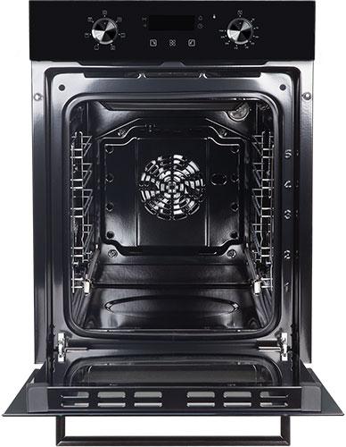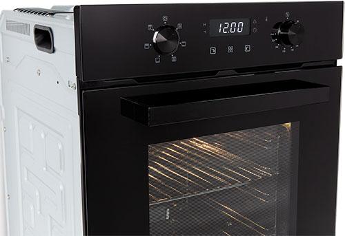 Объем камеры в 51 л с 5 уровнями установки противня на хромированных боковых направляющих позволит приготовить блюда любых размеров: запечь курицу целиком или испечь пирог на большую семью. В комплекте есть противень и съемная решетка.
