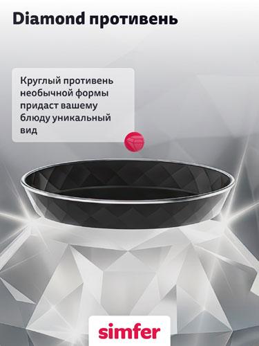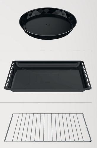 1 стандартный противень, 1 хромированная решётка, 1 круглый Diamond противень, инструкция по эксплуатации, сертификат, гарантийный талон