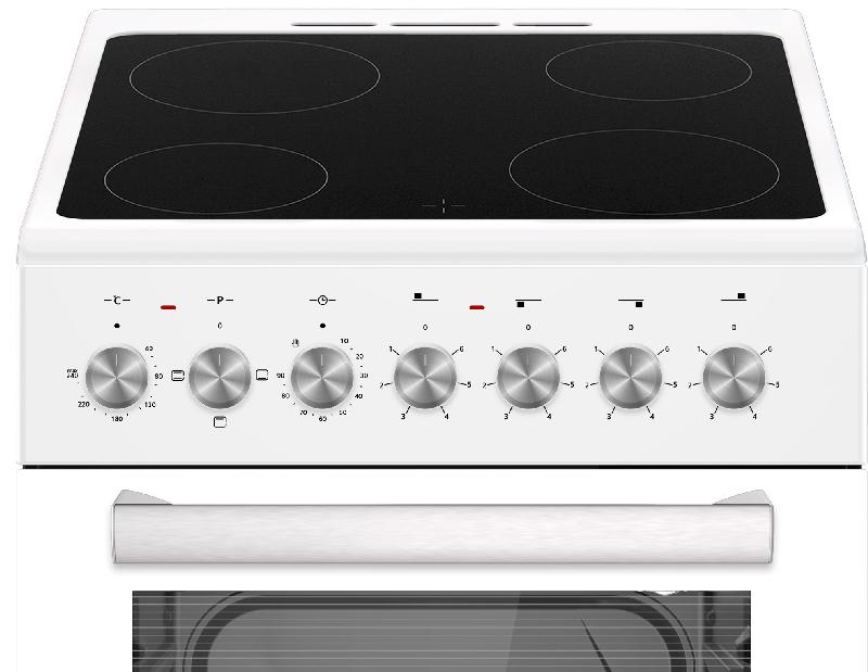Рабочая поверхность плиты выполнена из стеклокерамики, что обеспечивает её долговечность и легкость в уходе. Дверца духовки открывается откидной способ, что облегчает доступ к внутренней части и упрощает очистку.