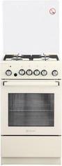 Рабочая поверхность: Рабочий стол: эмаль Количество конфорок: 4 газовые Мощность конфорок: 1,0/1,75/1,75/3,0 кВт Электророзжиг Чугунная решётка Духовка: Тип: электрическая Объем: 43 л Два нагревательных элемента: 1,2 кВт и 0,8 кВт ТЭН-гриль - 1,8 кВт Терморегулятор Освещение Вертел Гриль Механический таймер Принадлежности: большой противень, решётка для жарки, малый противень Дополнительная информация: Габариты: 85х50х50 см Стеклянная крышка рабочего стола Хозяйственный отсек