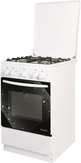 С января 2026 года вводится обновлённый дизайн панели; Габаритные размеры: 50х58.5х85 см. Полезный объем духовки: 52 л. Тип очистки Гидролизная/ 4 газ. конфорки. Цвет модели Белый. Материал варочной поверхности Эмаль. Материал решеток варочной поверхности Чугун. Крышка плиты Металлическая. Газ-контроль духового шкафа. Электророзжиг горелок стола Кнопка розжига на панели. Тип направляющих духового шкафа Штампованные. Внутреннее покрытие духового шкафа Эмаль легкой очистки SMART CERAMIC. Количество стекол в дверце духового шкафа 2. Ящик для посуды и принадлежностей Откидная крышка. Аксессуары: Жаровня 1, Регулировочные ножки, Комплект сменных сопел, Противень 1, Решетка варочной поверхности 2, Решетка духового шкафа 1.