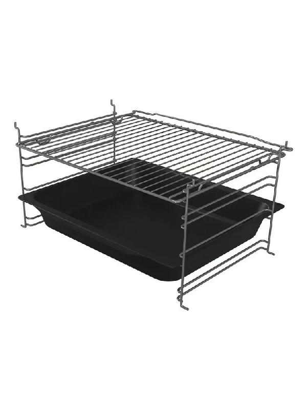 Габариты модели: 85х50х59,4 см. Крышка варочной поверхности стеклянная. Дверца духовки обладает двойным стеклом. Сетевой шнур длиной 150 см, проволочные металлические направляющие, глубокий противень, решетка, чугунные решетки, жиклеры и штуцер для подключения баллонного газа поставляются в комплекте.