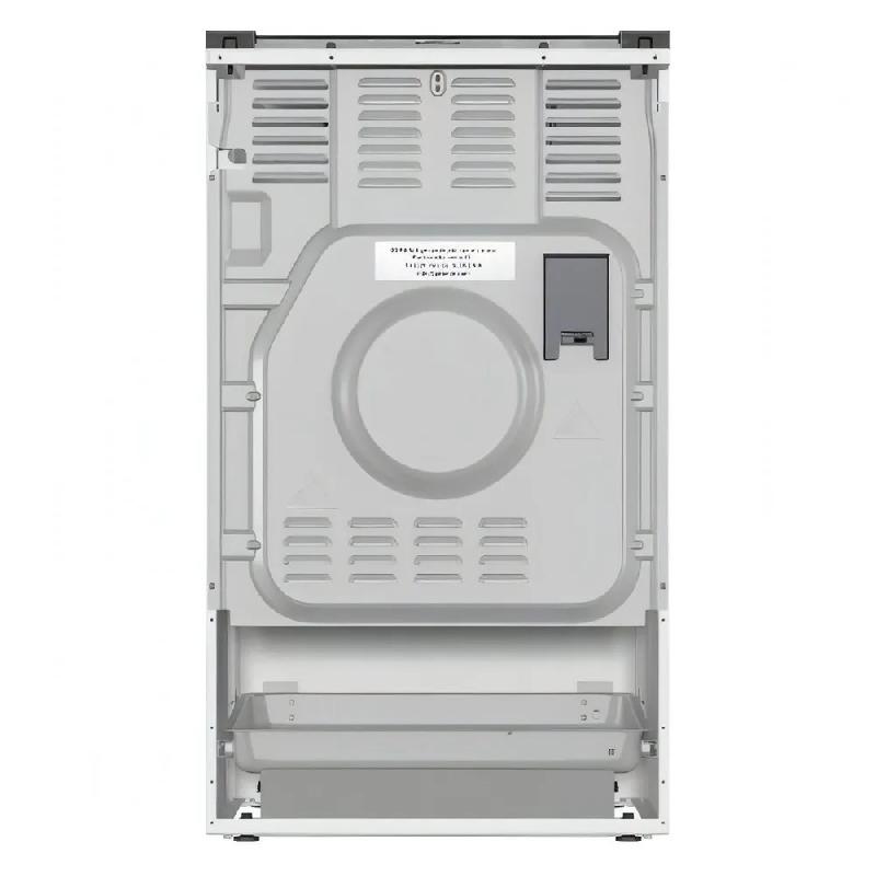 Плита оснащена четырьмя газовыми конфорками мощностью 1 кВт (передняя левая), 3 кВт (передняя правая), 1,9 кВт (задние). В комплект входят эмалированный противень, направляющие рельефной формы, решетка. В нижней части прибора расположен выдвижной ящик для посуды. Предусмотрена адаптация к баллонному газу (форсунки G30/30 в наборе).