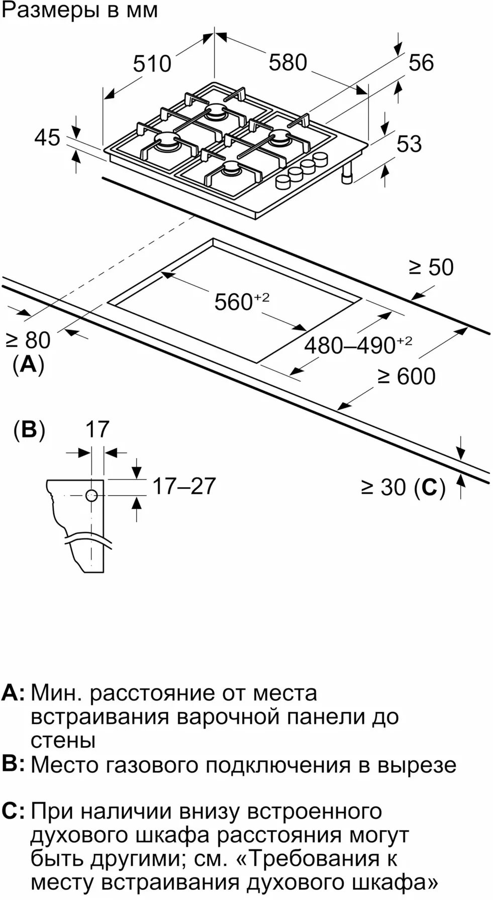 | Суммарная мощность газовых конфорок | 7.4 кВт |
