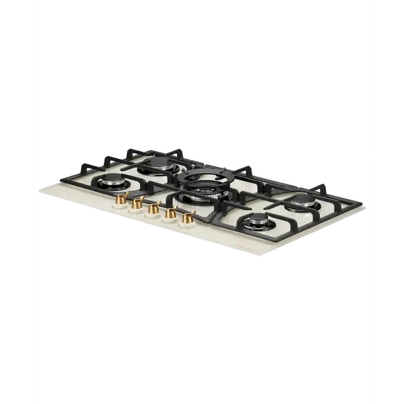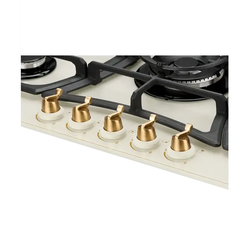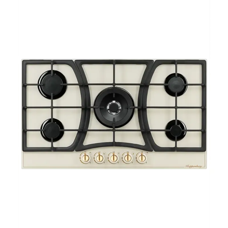 Газовая варочная поверхность Kuppersberg/ Газовая варочная поверхность, закаленное стекло, ширина 90 см, 5 газовых конфорок, WOK конфорка(4,2 кВт), автоподжиг, газ-контроль, чугунные решетки, Коллекция Classic, Цвет бежевый, Цвет фурнитуры бронзовый