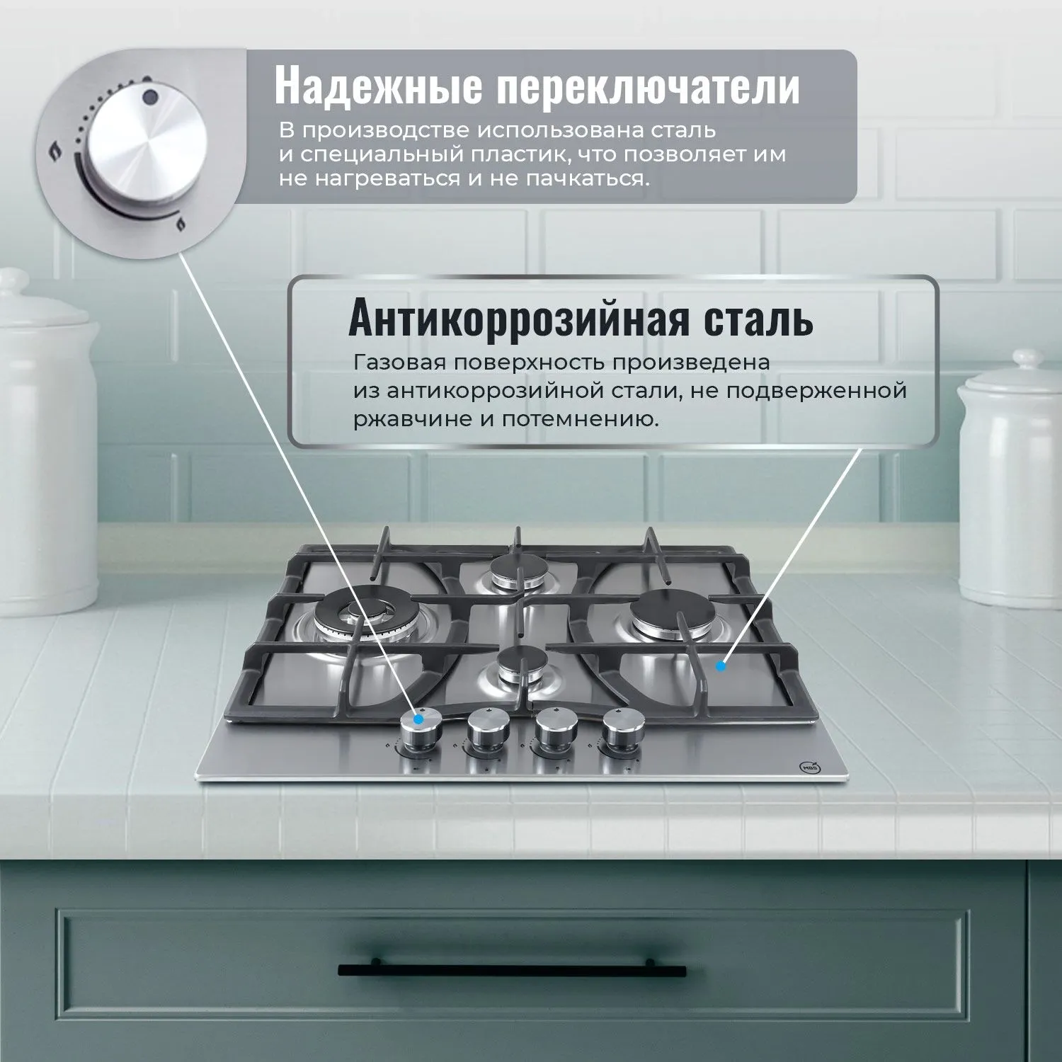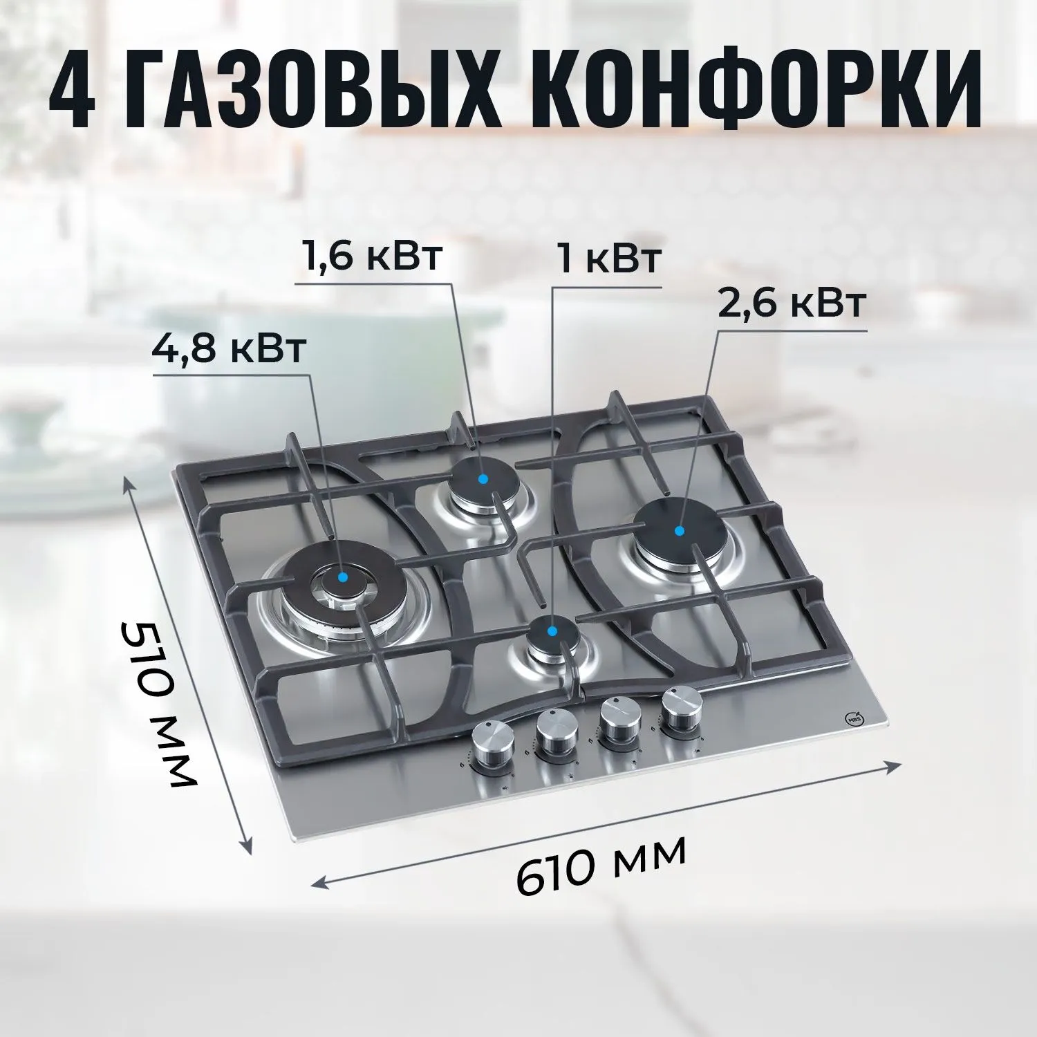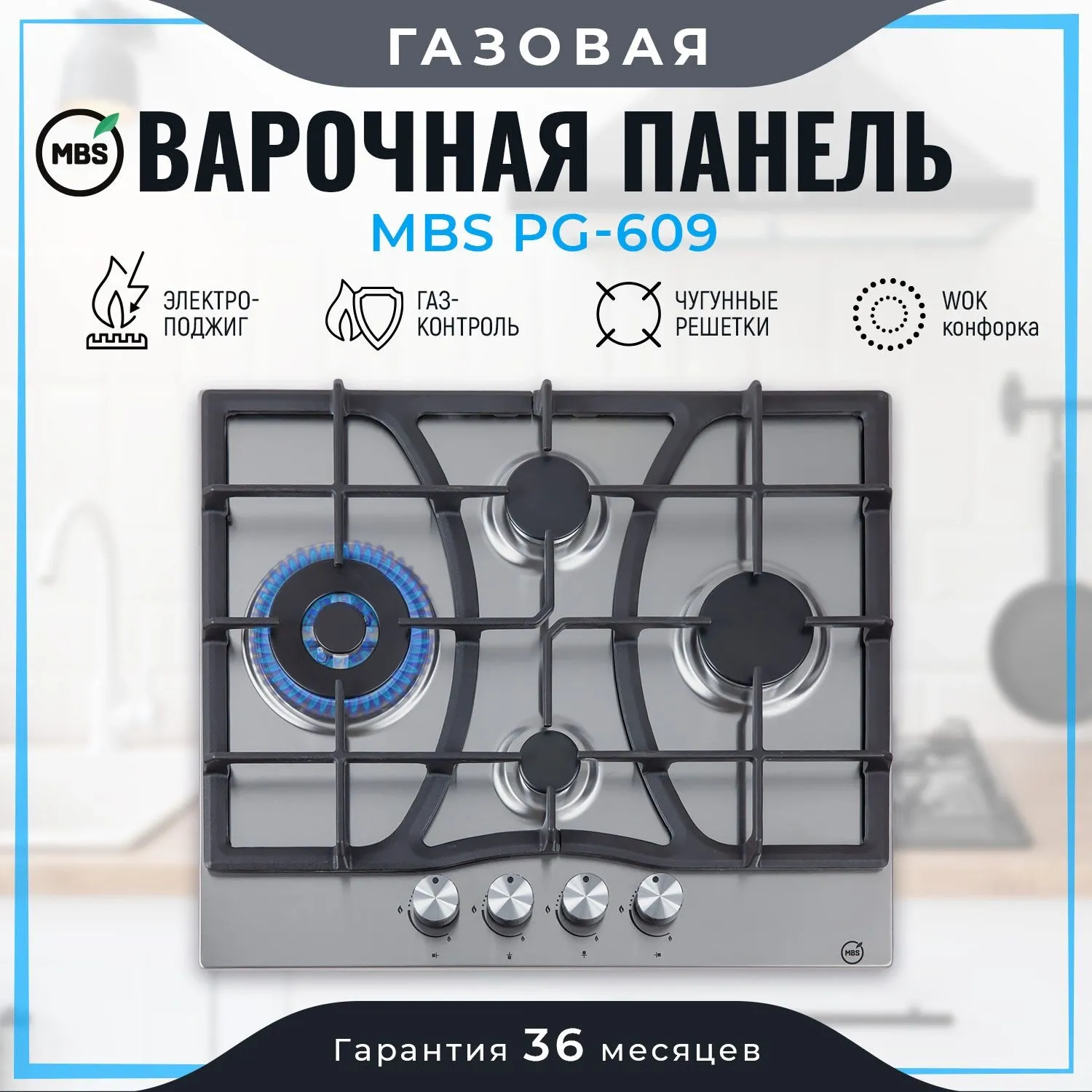 Газовая варочная поверхность MBS PG-609 нержавеющая сталь