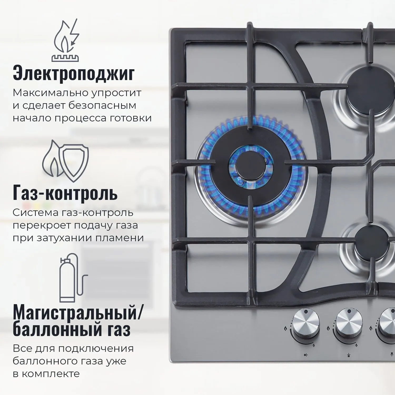 | Суммарная мощность газовых конфорок | 10 кВт |