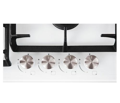 Мощность каждой горелки регулируется с помощью поворотных переключателей на фронтальной панели. Для удобства в ручки встроен автоматический электророзжиг, который легко включает нужную конфорку одним нажатием.
