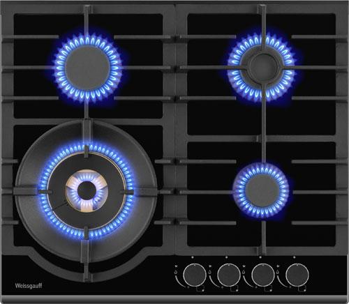 Встраиваемая независимая газовая панель Weissgauff шириной 60 см, оснащенная инновационной технологией WOK-конфороки Brass Burner, металлическими рукоятками, автоматическим электроподжигом и газ-контролем, исполненная в закалённом чёрном стекле - это по-настоящему эффективное и красивое решение для вашей кухни!