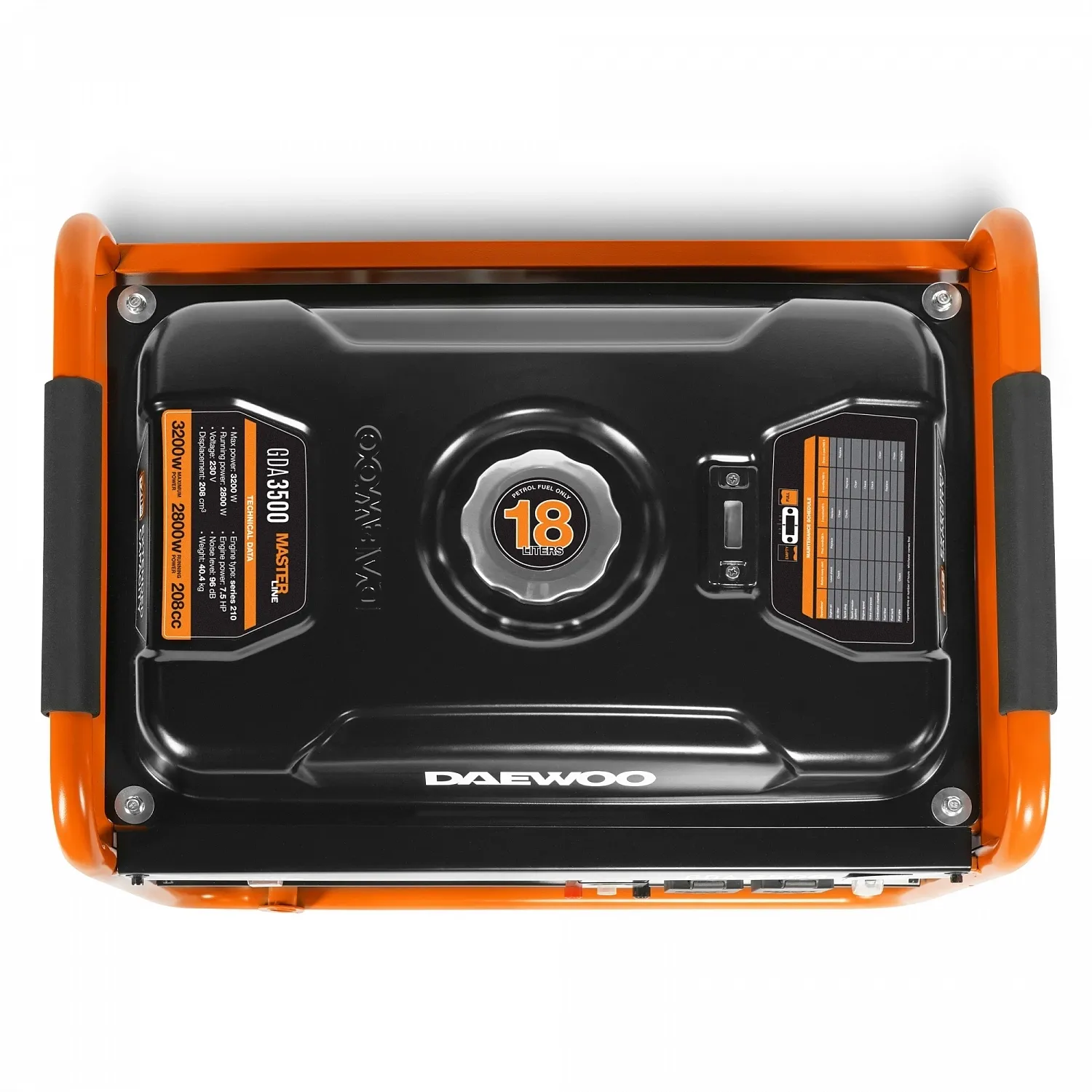 | Особенности | Профессиональный двигатель DAEWOO, увеличенный топливный бак 18 л, быстрый запуск, многофункциональный дисплей, AVR (Automatic Voltage Regulator), умная защита от перегрузок, датчик уровня масла, низк |