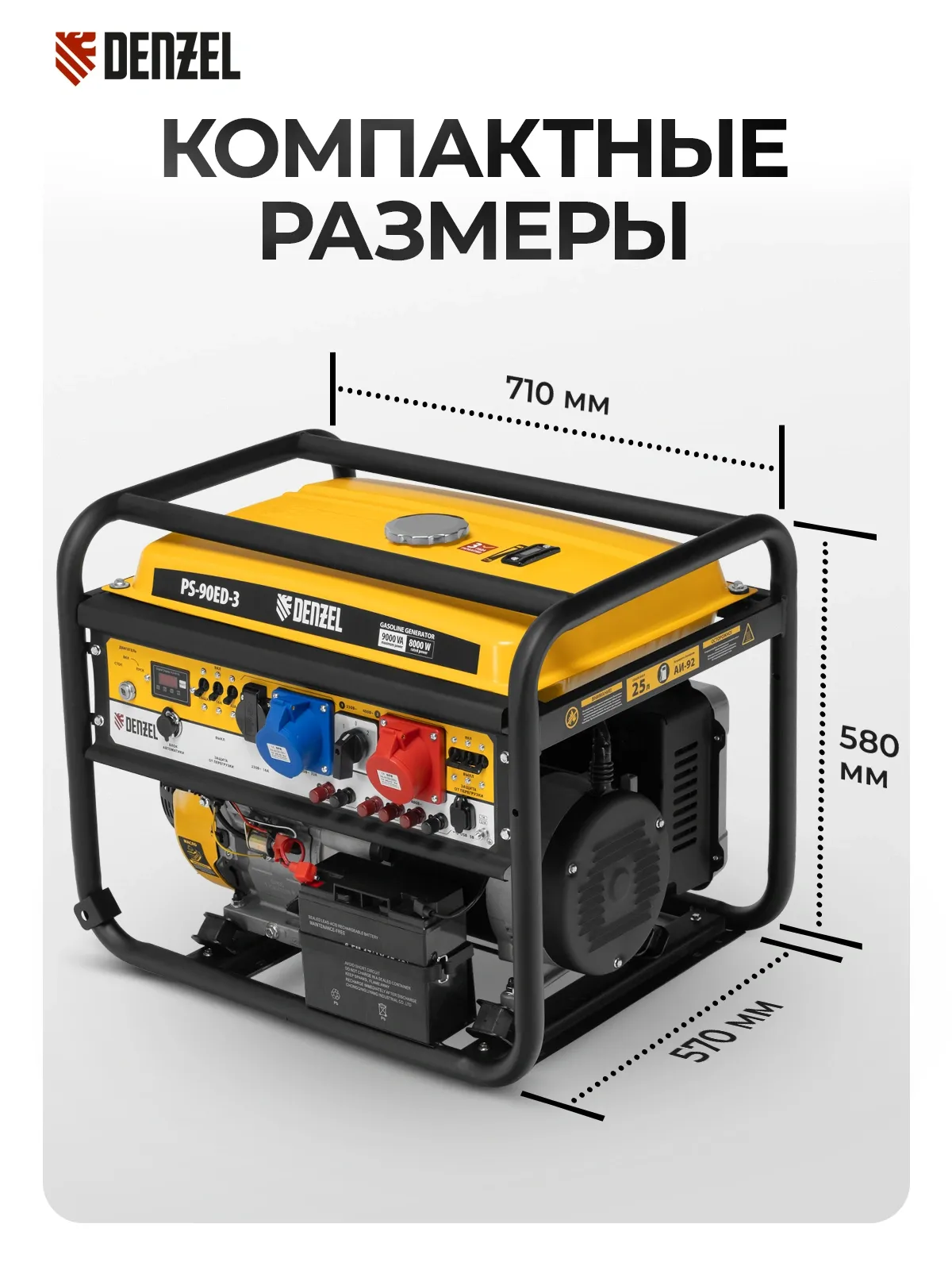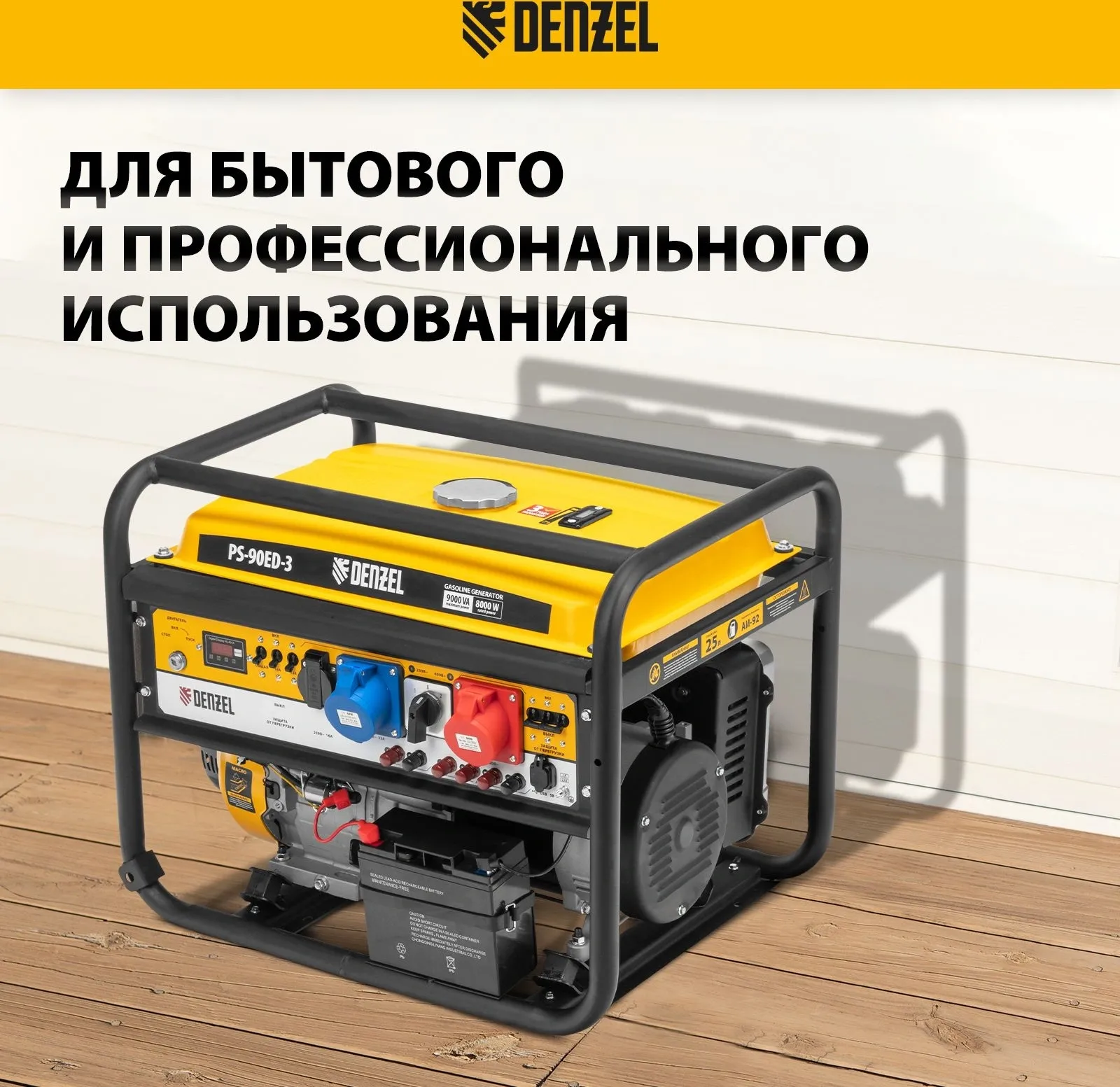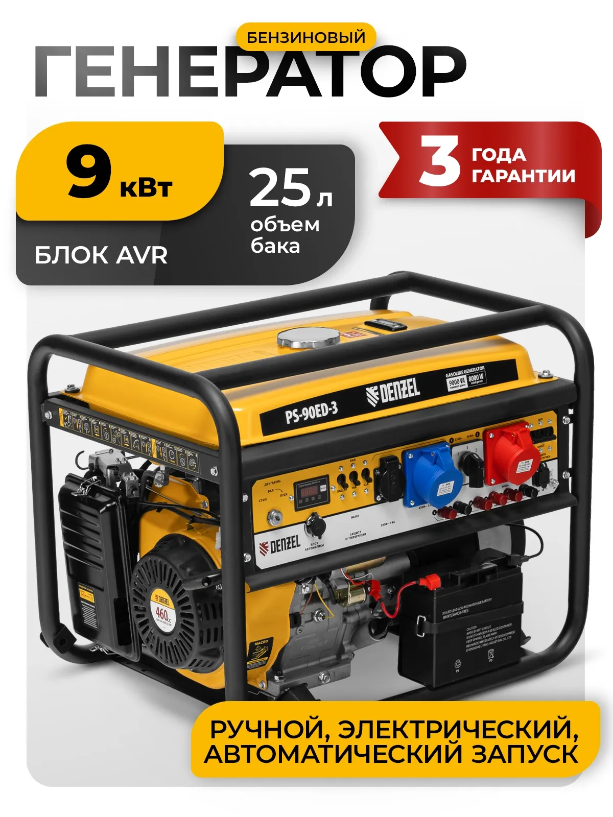 | Особенности | Бензиновый генератор Denzel PS 90 ED-3 - универсальное решение для строительной площадки или загородного дома. Классические трехфазные генераторы выдают полную мощность при работе в режиме 380В. А в |