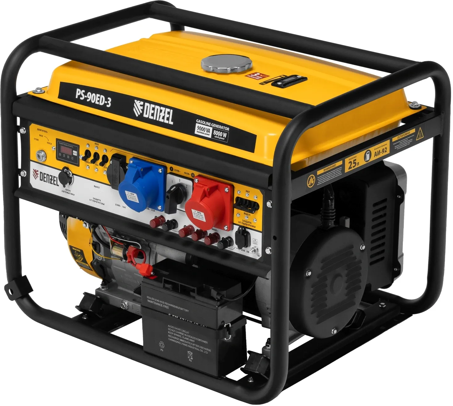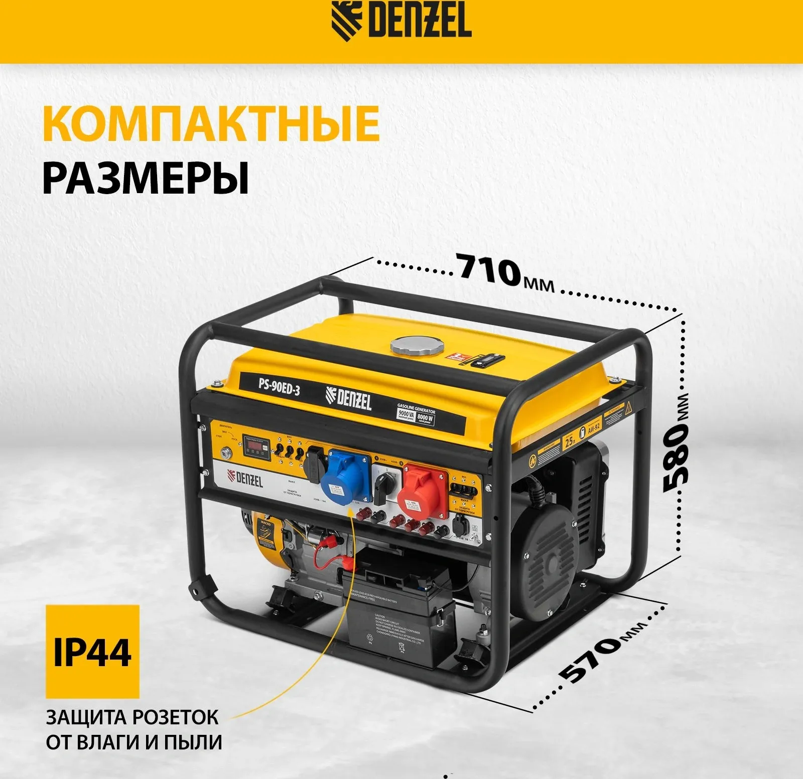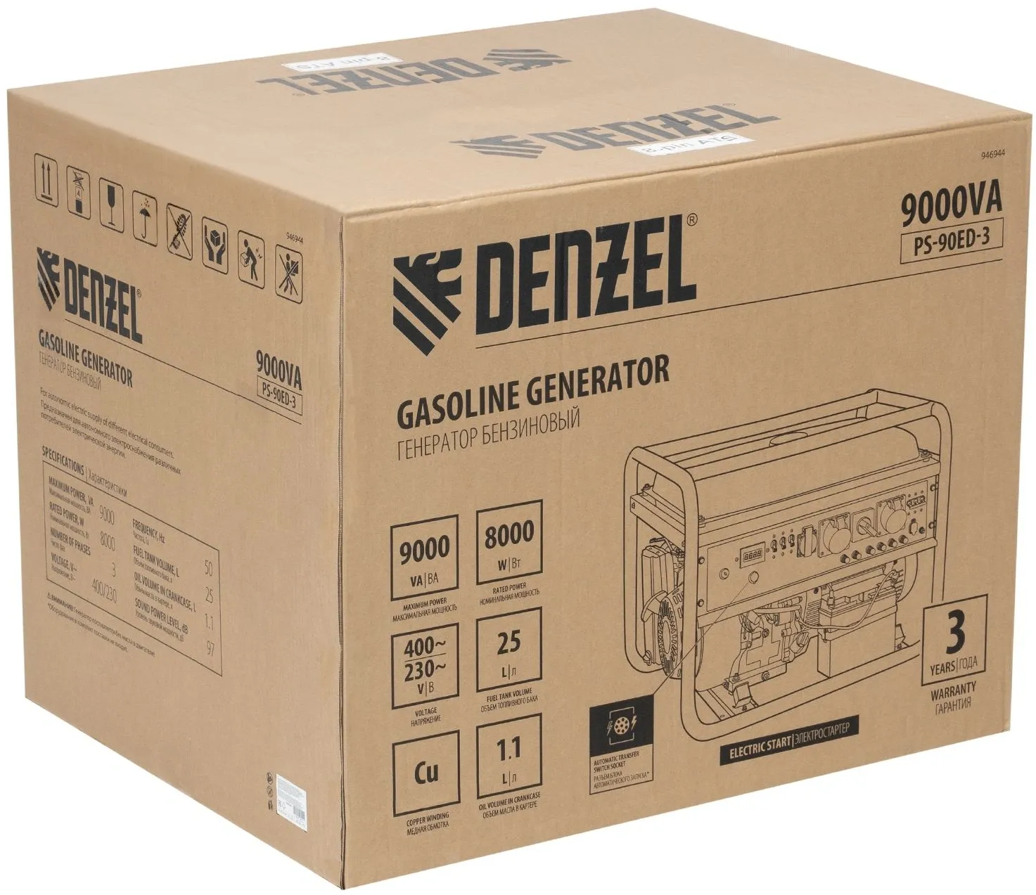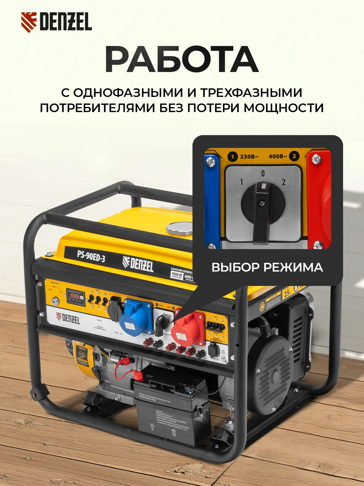 | Особенности | Бензиновый генератор Denzel PS 90 ED-3 - универсальное решение для строительной площадки или загородного дома. Классические трехфазные генераторы выдают полную мощность при работе в режиме 380В. А в |