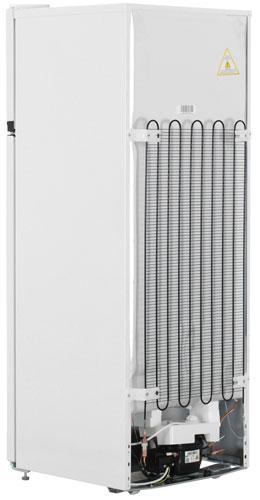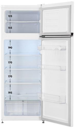 Морозильная камера прибора объемом 46 л располагается сверху и поделена на 2 полки. Холодильная камера состоит из 4 полок, регулируемых по высоте, и прозрачного ящика для овощей и фруктов. Дверцы Beko B1RDSK240W открываются направо, при этом их можно перенавесить для удобства размещения холодильника на кухне. При перебоях с электричеством прибор способен сохранять холод до 16 ч.