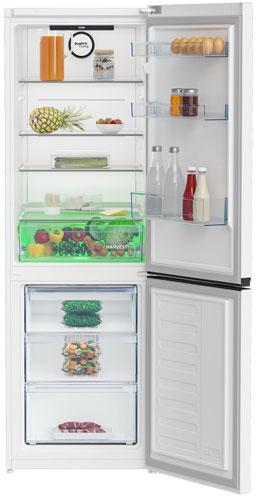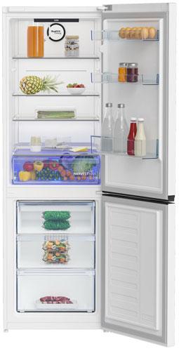 Двухкамерный холодильник с нижней морозильной камерой и общим объемом 320 л оснащен двухконтурной системой охлаждения NoFrost Dual Cooling (Ноу Фрост), которая разделяет воздушные потоки в холодильной и морозильной камерах и не допускает смешивания запахов и образования льда на стенках. Холодильник не нужно размораживать, а специальный режим «Отпуск» снижает потребление электроэнергии, если вы не пользуетесь им долгое время. Ящик для фруктов и овощей в холодильнике Beko дополнен технологией 3-х цветов HarvestFresh, благодаря которой продукты дольше сохраняют свежесть, натуральный вкус и витамины.