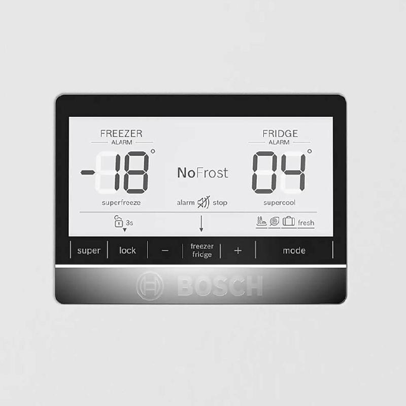 Двухкамерный холодильник Bosch KGN86AW32U - это сочетание функциональности, стильного дизайна и высокого качества. Отдельностоящая модель с морозильной камерой, расположенной снизу, привлекает внимание своим современным и элегантным дизайном. Белый цвет корпуса легко впишется в любой интерьер, а вертикальная накладная ручка двери удобна в использовании. Общий полезный объем холодильника составляет 619 литров, из которых 479 литров отводится под холодильную камеру, а 140 литров - под морозильную. Такой объем позволит вместить продукты для большой семьи или затовариваться на длительный срок. Управление холодильником осуществляется электронно, при помощи сенсорных элементов управления и дисплея. Система охлаждения No Frost обеспечивает равномерное распределение температуры, а автоматическая система размораживания избавит вас от необходимости регулярно проводить эту процедуру вручную. Функции суперохлаждения и суперзамораживания позволяют быстро охладить или заморозить большое количество продуктов, сохраняя их свежесть и полезные свойства.