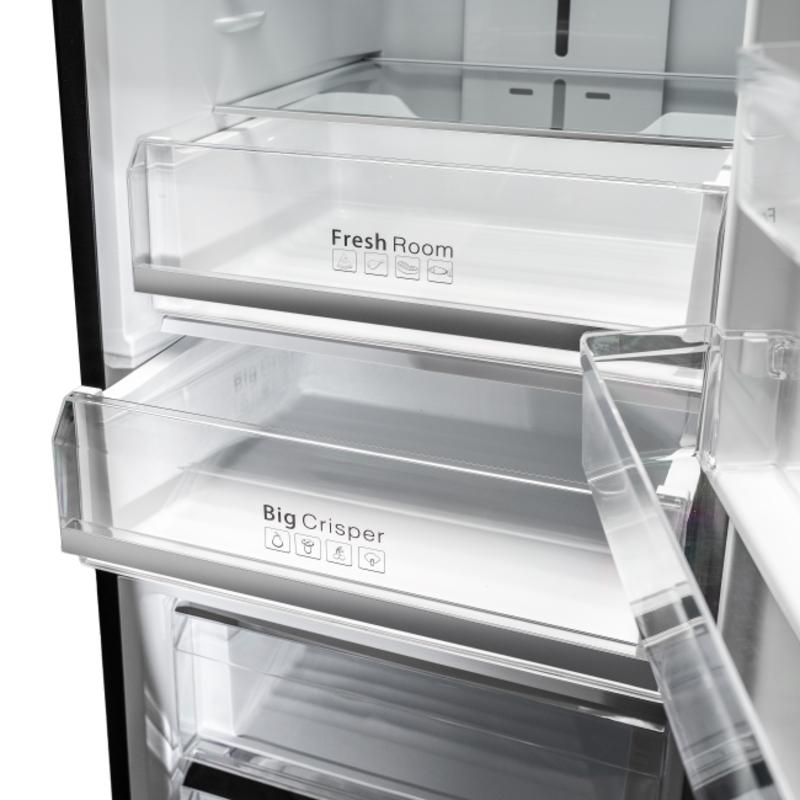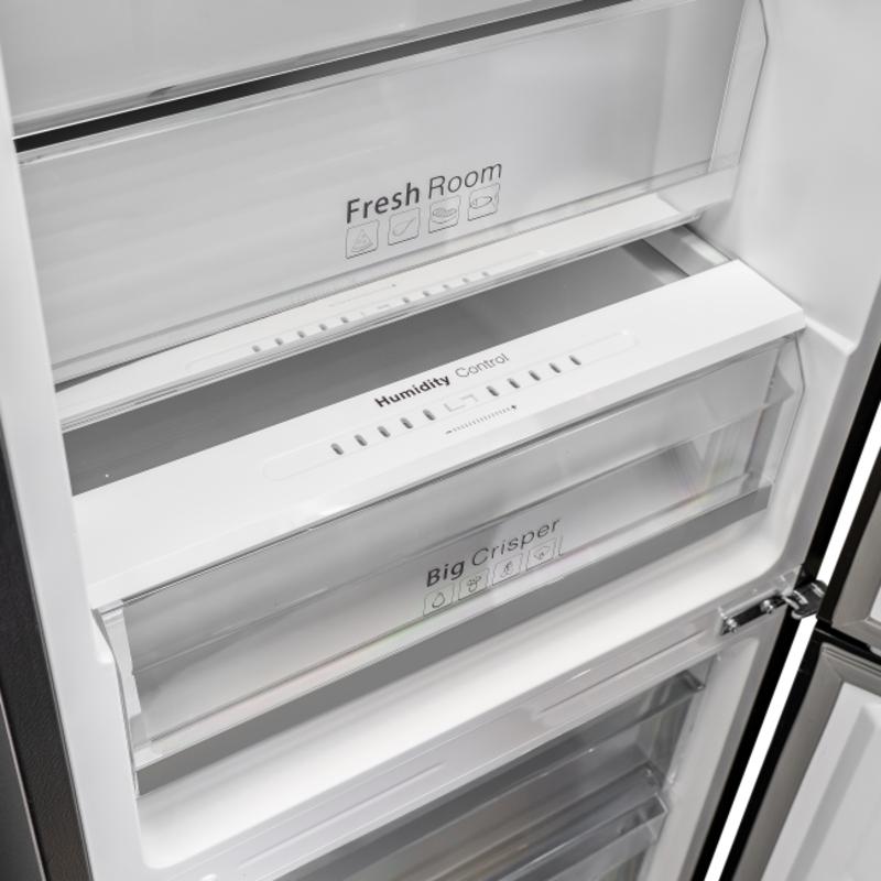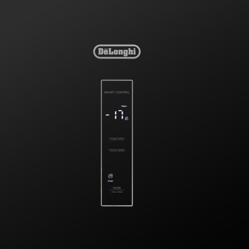 Холодильник Delonghi/ Холодильник Delonghi, отдельностоящий, ВхШхГ 1950х600х658 мм, объем 344 (235+109) л, сенсорное управление, Total Frost Free, Fresh Zone, контроль влажности, суперохлаждение, суперзамораживание, LED освещение, инверторный компрессор, энергоэффективность А+, цвет черное стекло