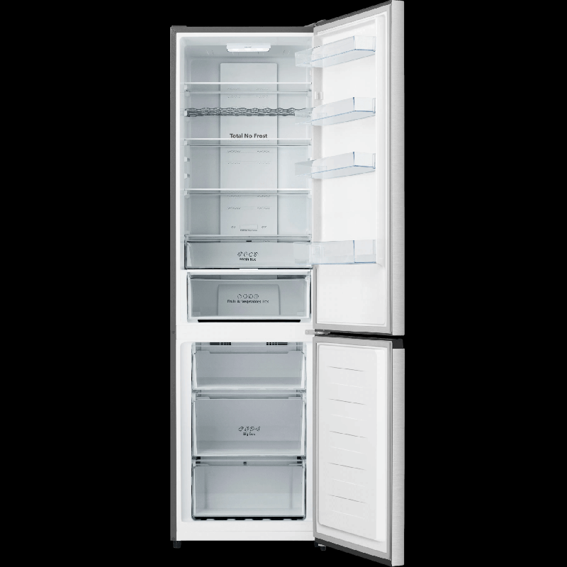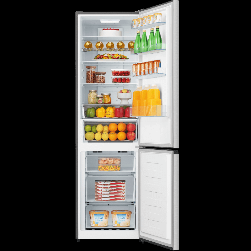 Холодильник Hisense RB3N331NAC1 оборудован холодильной камерой объемом 247 л и морозильным отсеком емкостью 111 л. На корпусе расположена сенсорная панель управления.