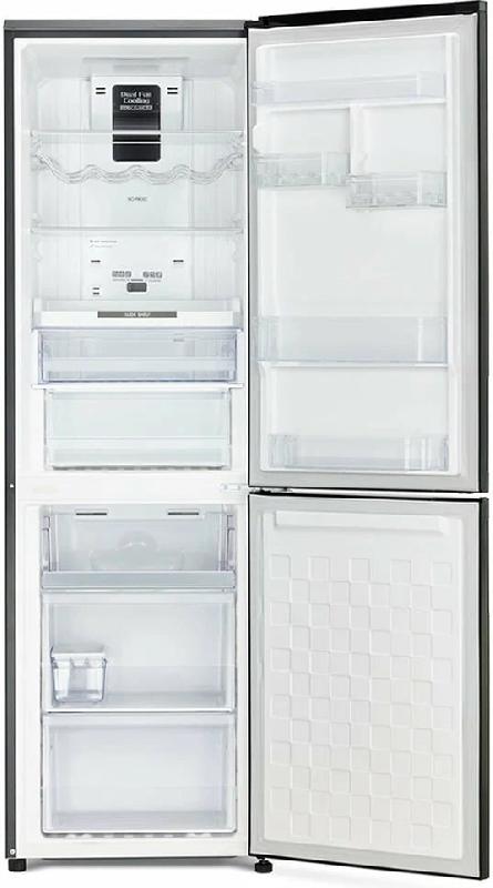 Холодильник R-BG 410 PUC6X XGR с системой Full No Frost и нижним расположением морозильной камеры. Отличается использованием высокотехнологичного инверторного компрессорного блока, который обеспечивает низкий уровень шума (38 дБ) и малый удельный расход электроэнергии, достигающийся за счет высокой энергетической эффективности класса А++. Прибор оборудован светодиодным освещением и эффективной цифровой системой управления с LED-дисплеями и сенсорными поверхностями. Общий объем составляет 320 л, чего достаточно для семьи средних размеров, численностью до 5 человек.