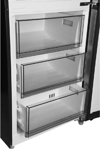 Ящики морозильного отделения удобно извлекать для закладки и выемки продуктов, благодаря вырезам в боковых панелях.