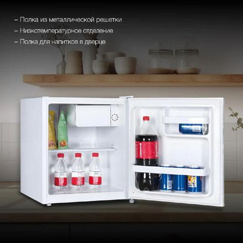 Холодильная камера на 46 литров со съемной металлической полкой позволяет адаптировать пространство под продукты и напитки разных размеров. Ручное размораживание обеспечивает простоту обслуживания, а уровень шума в 39 дБ гарантирует тихую работу, не создавая излишнего шума в вашем жилом или рабочем пространстве.