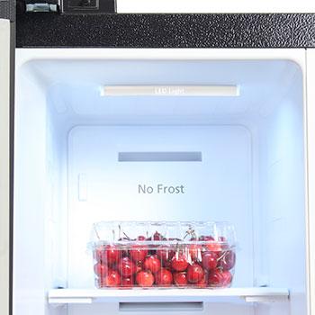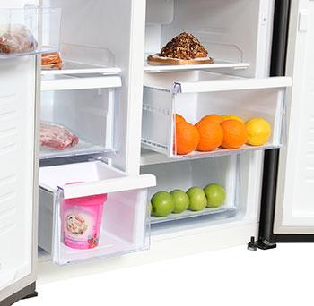 Правая половина Hyundai CS5073FV создаёт оптимальный режим для хранения еды охлажденной. Для удобства она разделена на два отдела. Нижний состоит из двух ящиков и одной полки, верхний больше и вместительнее. Обе части Hyundai CS5073FV не требуют разморозки, потому что оборудованы технологией No Frost, препятствующей образованию наледи и снежной шубы. Также они поддерживают суперзаморозку и суперохлаждение для сохранения полезных свойств продуктов.