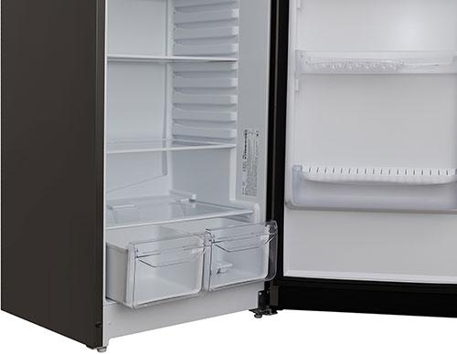 За счет возможности регулирования высоты полок достигается наиболее эффективное использование пространства холодильника.