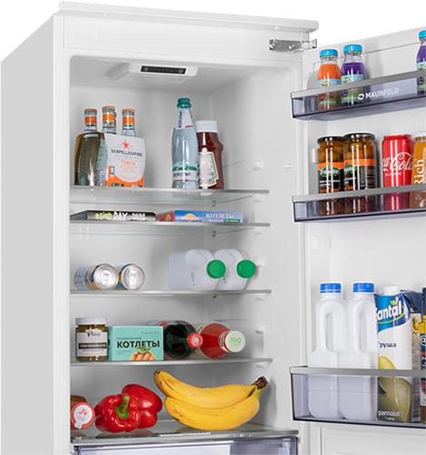 Среднеразмерный двухкамерный холодильник MAUNFELD MBF177SWGR Inverter с нижним расположением морозильной камеры – незаменимая деталь любой кухни. Его можно встроить в кухонную мебель, и он станет незаметным.