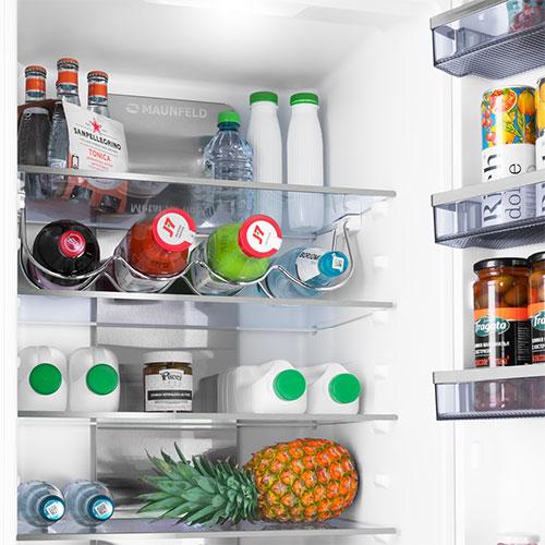 Встраиваемый холодильник MAUNFELD MBF193NFWGR имеет встроенную панель управления, оснащенная дисплеем с индикацией температуры, и если она поднимется в любом из отделений, он подаст сигнал — как световой, так и акустический. То же самое произойдет, если вы забудете закрыть дверцу. Все это снижает вероятность порчи продуктов вследствие невнимательности или перебоев электроэнергии.
