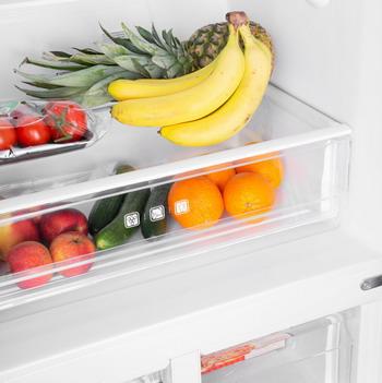 Внутренняя часть холодильника выполнена из антибактериального белого пластика легкой очистки и укомплектована устройством фильтрации «LECO», обеспечивающего увеличение времени хранения продуктов и продление свежести фруктов и овощей.