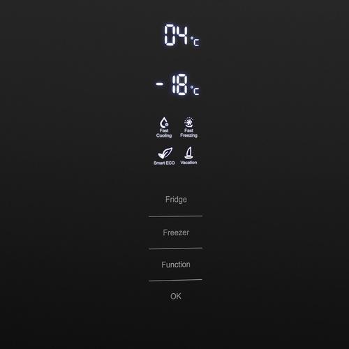 Наружная сенсорная панель позволяет устанавливать температуру и контролировать ее уровень, не открывая дверцу. Благодаря сенсорному дисплею вы можете в графическом и цифровом виде видеть информацию. Интерфейс будет понятен каждому. «Суперохлаждение» — функция холодильной камеры, при активации которой вентилятор направляет потоки холодного воздуха во все углы рабочего пространства — продукты охлаждаются быстро и равномерно. Внутренние стенки устройства покрыты особым материалом, замедляющим размножение вредных микроорганизмов.