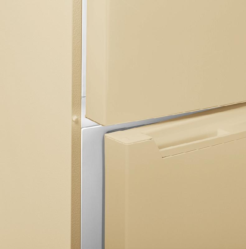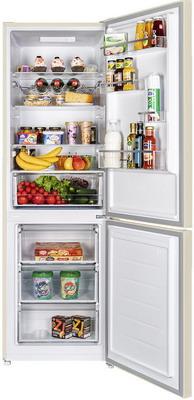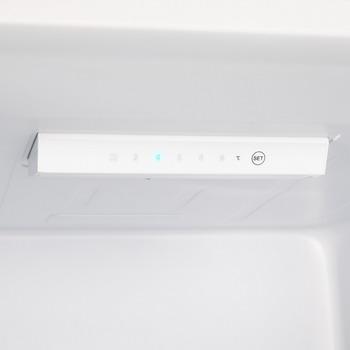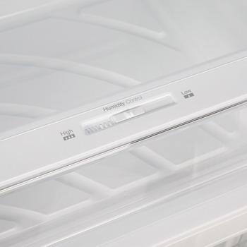 В холодильном отделении товара имеется 3 регулируемые полки из закаленного стекла, что позволяют настроить пространство устройства под предпочтения пользователя, а 3 полки на двери и 2 ящика. Объем составляет 211л. Система SmartFrost — конструктивное решение, при котором хладагент распределяется по всей холодильной камере, из-за чего придерживается единая температура. При этом иней, появляющийся в процессе охлаждения, оседает на испарителе и затем тает, а вода собирается в отдельную емкость и испаряется.