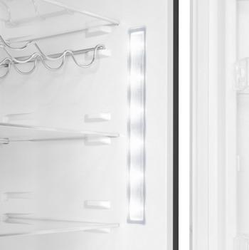 Холодильник может быть установлен на кухне вплотную к мебели и стенам без зазоров, сохраняя драгоценное место на кухне, благодаря конденсаторной решетке закрытого типа.