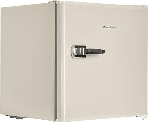 Однокамерный мини-холодильник (50 л) MAUNFELD в стиле ретро для уникальных дизайнерских интерьеров. Идеально разместится в ретро-пространстве. Внешний вид подчеркивается скругленными краями корпуса и массивной хромированной ручкой.