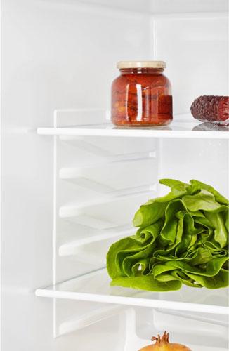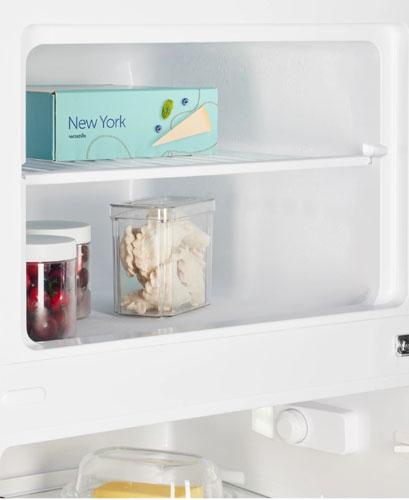 Морозильник с полезным объемом 51 литр расположен в верхней части холодильника и имеет мощность заморозки до 2,5 кг в сутки. В случае отключения электричества предусмотрено автономное сохранение холода до 16 часов.